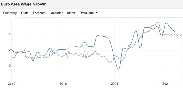 Si la BCE se basait principalement sur les chiffres de l’inflation, il n’y aurait aucune justification pour des baisses de taux à ce stade : l’inflation globale, l’inflation sous-jacente et celle des services sont toutes au-dessus du mandat, la croissance des salaires nominaux reste élevée en raison des tensions sur le marché du travail, et les prix de l’énergie augmentent clairement.