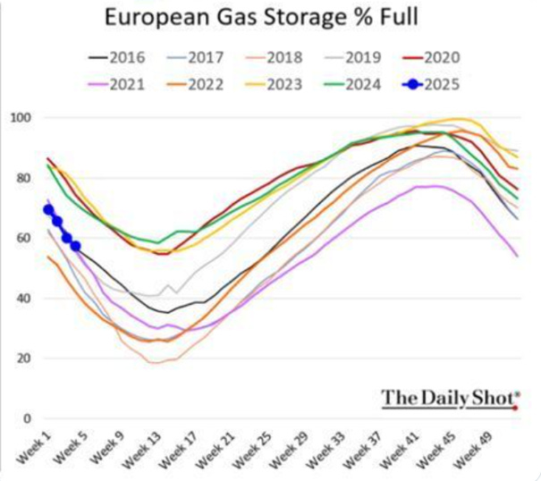Les conditions météorologiques jouent évidemment un rôle dans ce processus, mais il est à noter que les stocks de gaz sont en bien moins bonne voie pour démarrer l’année que ces deux dernières années, ce qui constitue une raison importante de faire pression sur les prix pour qu’ils évoluent à la hausse.