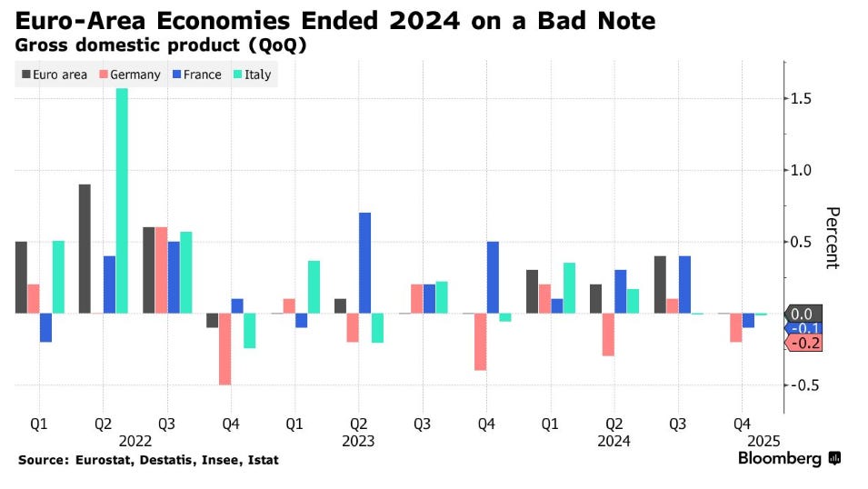Effectivement, la Zone euro a connu une stagnation inattendue à la fin de l’année dernière, l’effondrement des gouvernements de ses deux principales économies ayant ébranlé la confiance des entreprises et des consommateurs.